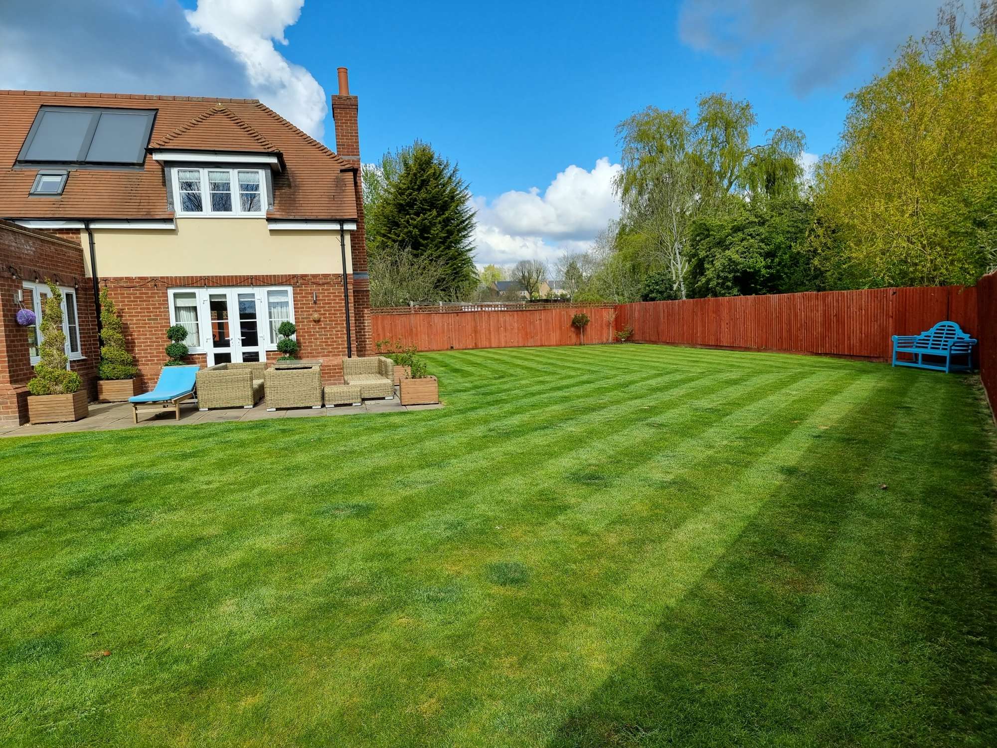 Professional garden maintenance ensures neatly mowed lawns, well-trimmed shrubs, and clean, tidy outdoor spaces.